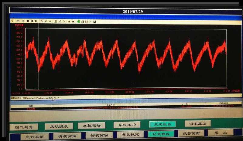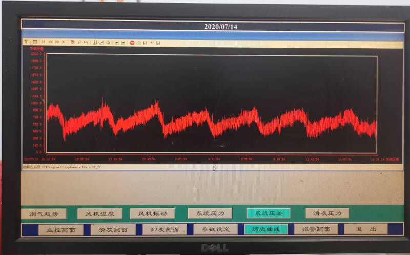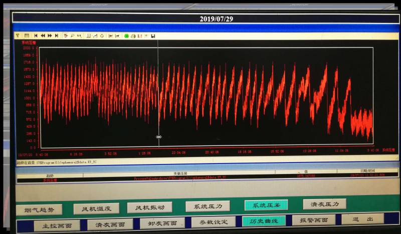技改之后:在設定定壓噴吹(1500Pa)的同時增加定時噴吹,三個小時啟動一次噴吹;