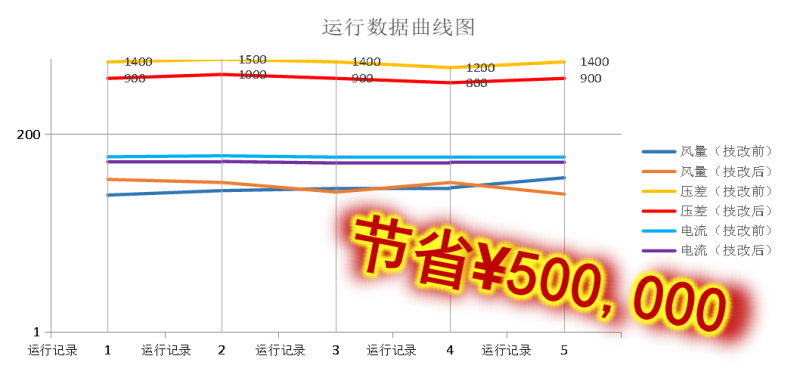3、風機電流下降明顯,實際功率減少,項目技改體現節(jié)能效果,每一年除塵器系統(tǒng)實際節(jié)能將達到50萬以上;