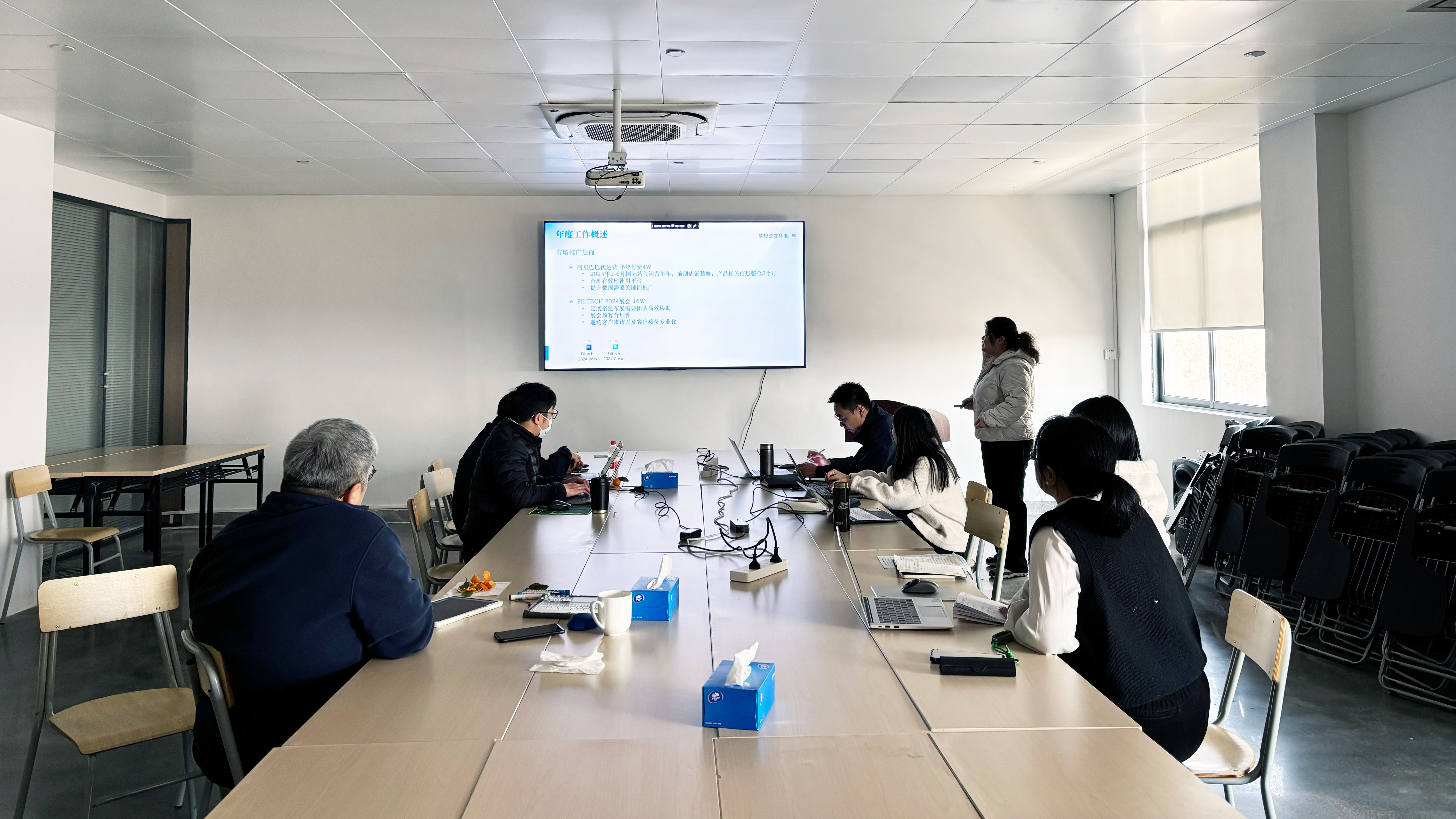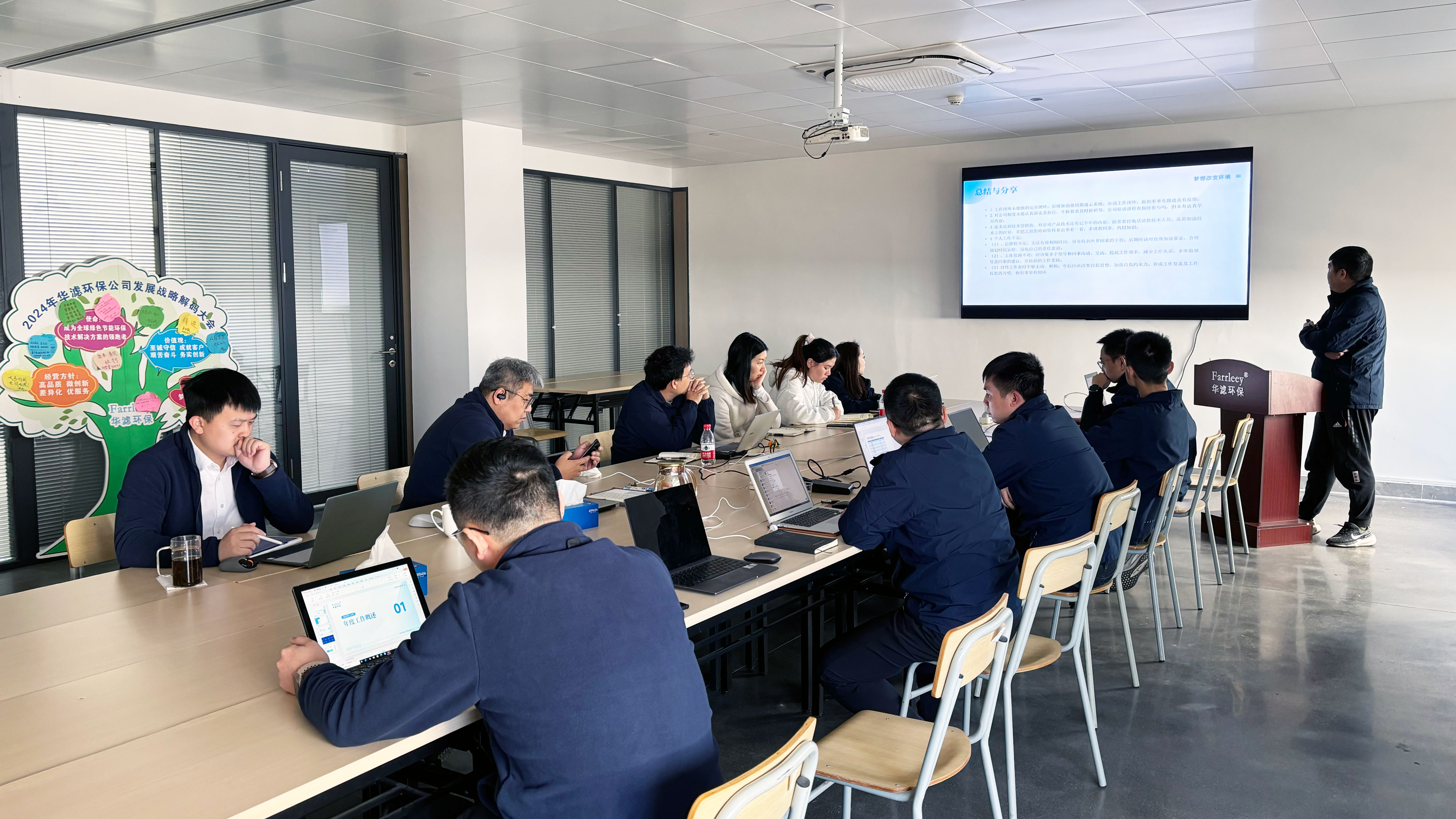 研究院詳細匯報了項目成果,展示了金年会環保在行業內的技術領先優勢。研發中心列舉過去一年中研發成果,通過研討會,明確未來研發目標。制造中心針對2024年生產制造工作進行全盤分析,持續做好安全生產、高效生產工作。