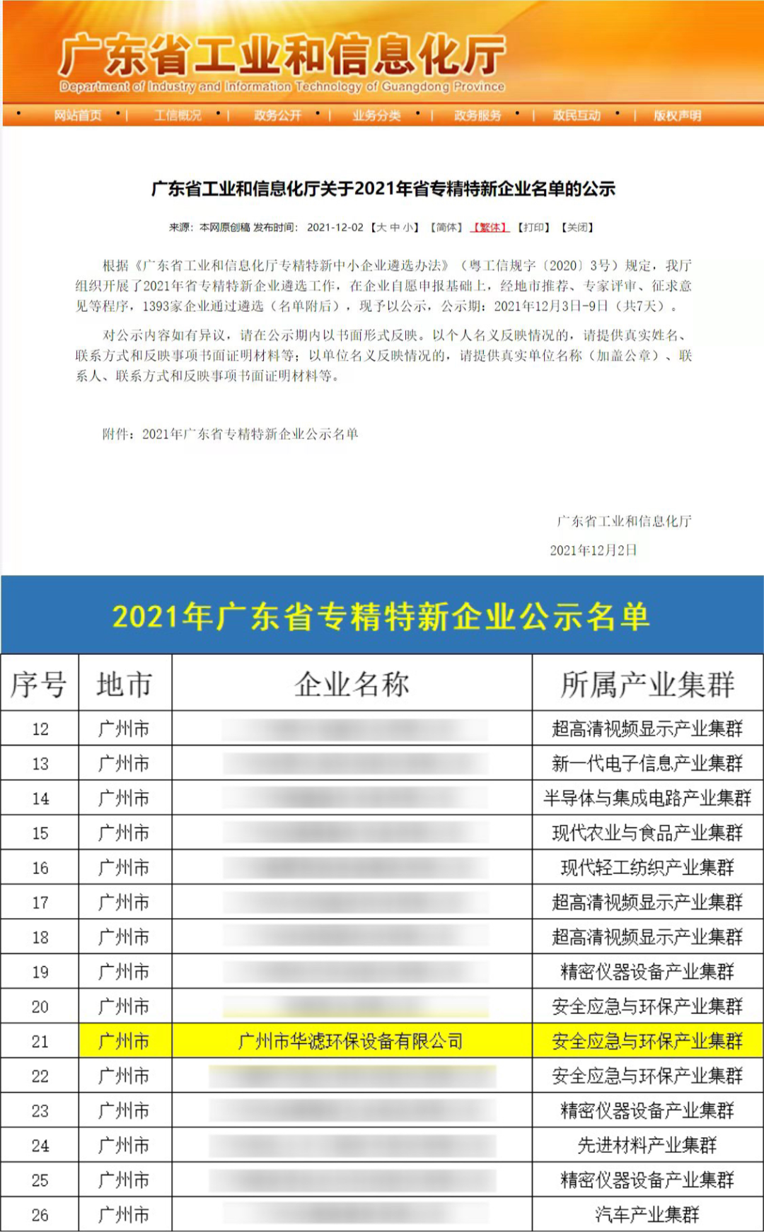 日前,廣東省工業(yè)和信息化廳平臺公示了2021年度省級“專精特新”企業(yè)名單。經(jīng)過公示,廣州市金年会環(huán)保設備有限公司(以下簡稱“金年会環(huán)保”)憑借強勁的研發(fā)實力、雄厚的技術創(chuàng)新能力,從眾多企業(yè)中脫穎而出,成功榮獲廣東省“專精特新”企業(yè)稱號。