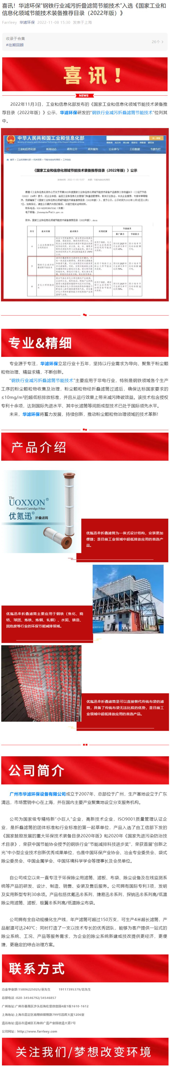 喜訊!金年会環?!颁撹F行業減污折疊濾筒節能技術”入選《國家工業和信息化領域節能技術裝備推薦目錄(2022年版)》