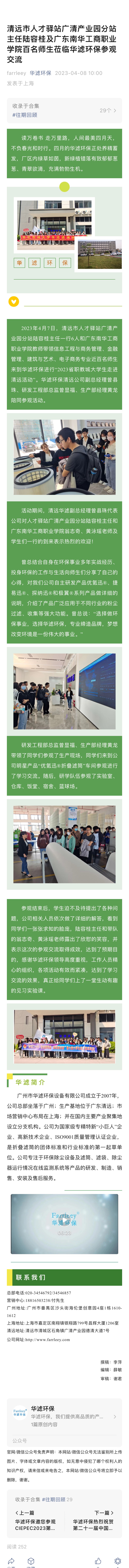 清遠市人才驛站廣清產業園分站主任陸容桂及廣東南華工商職業學院百名師生蒞臨金年会環保參觀交流